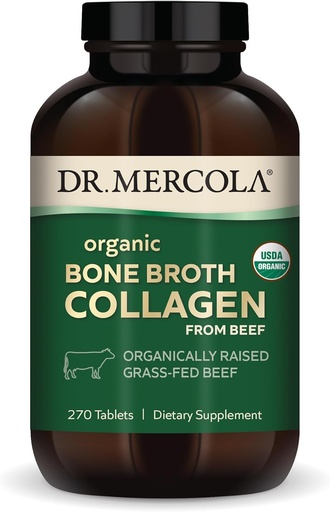 Dr. Mercola Organic Bone Broth Collagen, 90 Servings (270 Tablets), Organically Raised Grass-Fed Beef, Dietary Supplement, Supports Bone and Joint Comfort, USDA Organic, Non-GMO