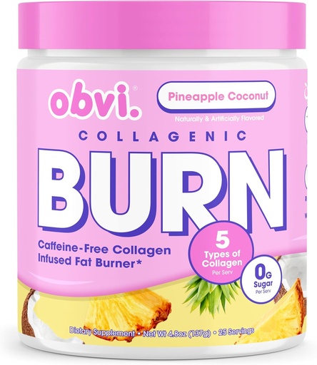 Obvi Collagenic Burn Powder | Multi-Collagen Peptide Blend with GBB, Ashwagandha & Green Coffee | Pineapple Coconut, 25 Servings