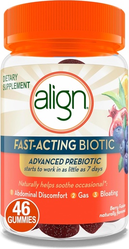 Align Advanced Prebiotic Supplement, Fast-Acting Biotic Gummies, Advanced Prebiotic for Women and Men, Works In As Little As 7 days*, 46 Gummies