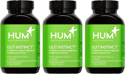 HUM Gut Instinct Daily Probiotics for Women and Men, Digestive Health, Lactobacillus, Bifidobacterium Strains for Immune Support, Probiotic Supplement for Healthy Gut Diversity, 90 Capsules