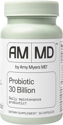 Amy Myers MD Probiotics 30 Billion CFU - Supports Digestive Health, Gut Microbiome & Immune Function - 14 Strains - Dairy-Free, Gluten-Free - 30 Capsules (30 Servings)