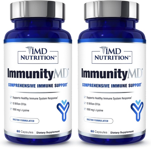 1MD Nutrition ImmunityMD - Immune Health Probiotic | Potent, Doctor-Selected Probiotic Strains with Prebiotic - Promote Overall Immune System Strength, Reduce Everyday Stress | 60 Capsules (2 Pack)