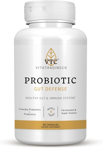 VTC VitaTradingCo. Probiotic Gut Defense | Probiotics and Prebiotics for Gut Health & Digestion | 1 Billion CFU with Whole Food Base | 90 Capsules