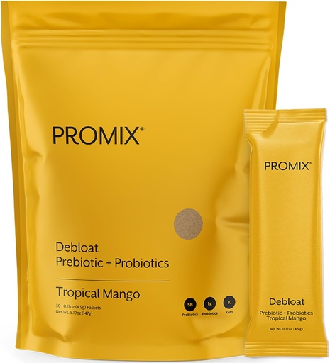 ProMix Nutrition Debloat Prebiotics and Probiotics Immune Support Supplement for Digestion, Cortisol Health, Gut Cleanse - Mango - 30 Servings (Pack of 30)