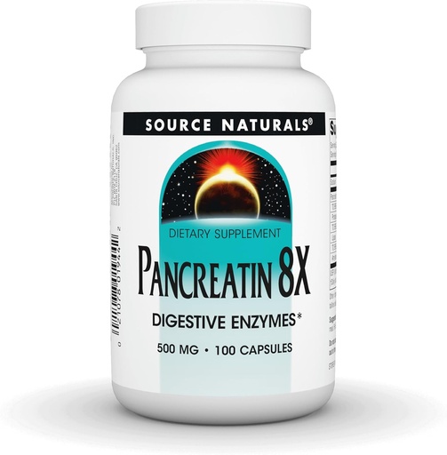 Source Naturals Pancreatin 8X, 500 mg Digestive Enzymes - 100 Capsules