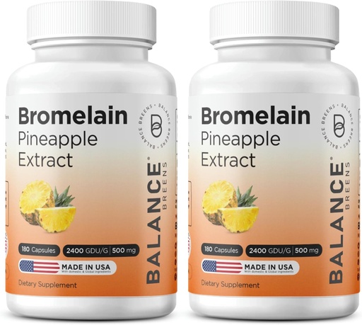 Balancebreens Bromelain 500mg Capsules – 2400 GDU Pineapple Extract Supplement for Joint Support, Natural Swelling Support, and Healthy Digestion – 180 Organic Capsules Made in USA