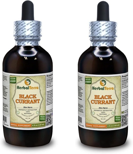 Black Currant (Ribes nigrum) Tincture, Dried Leaves Liquid Extract (Brand Name: HerbalTerra, Proudly Made in USA) 2x4 fl.oz (2x120 ml)