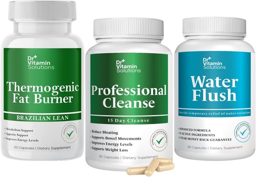 DR VITAMIN SOLUTIONS 15 Day Cleanse, Thermogenic Fat Burner, Water Weight Loss for Women & Men Bundle, 180 Capsules