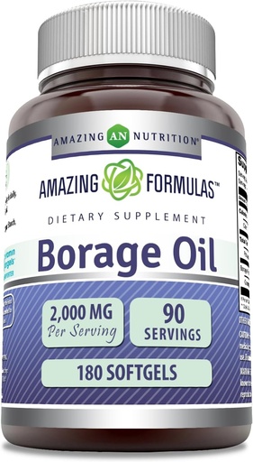 Amazing Formulas Borage Oil Supplement | 2000 Mg Per Serving | Softgels | Non-GMO | Gluten-Free | Made in USA (180 Count, 1 Pack)