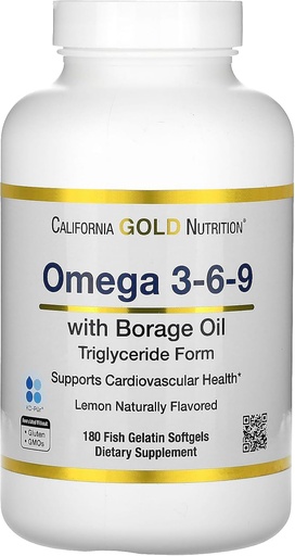 California Gold Nutrition Omega 3-6-9s, with Omega-3 Fish Oil and Borage Seed Oil, EPA, DHA, GLA, and Linoleic Acid, Natural Lemon, 180 Softgels