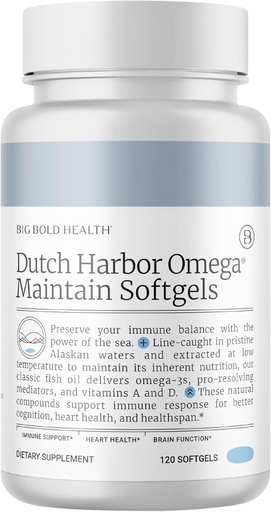 Big Bold Health Dutch Harbor Omega Maintain Softgels - Premium Alaskan Cod Liver Oil (120 Count) - Sustainably Sourced Omega-3 Supplement with EPA, DHA, DPA - Natural Vitamins A & D - MSC Certified