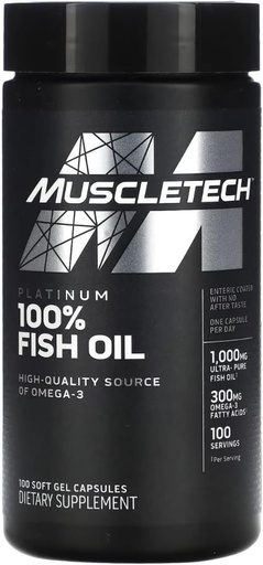 Omega 3 Fish Oil Capsules MuscleTech 100% Omega Fish Oil Burpless Fish Oil Supplement Omega 3 Fatty Acid Supplement Fish Oil 1000mg Pills, 100 Count
