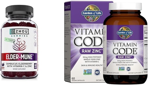 ZHOU Nutrition Elderberry Gummies with Garden of Life Zinc for Immune Health, Antioxidant Support, 60 Gummies & 30mg Zinc