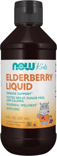 NOW Supplements, Liquid Elderberry for Kids with Zinc and Astragalus, Immune Support*, 8-Ounce, packaging may vary