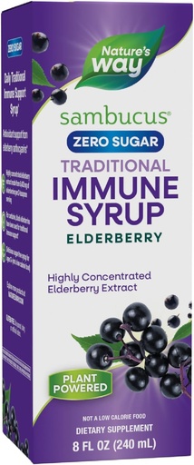 Nature’s Way Sambucus Zero Sugar Traditional Immune Syrup, Highly Concentrated Black Elderberry Extract, Traditional Immune Support*, Sugar-Free, Berry Flavored, 8 Fl Oz (Packaging May Vary)