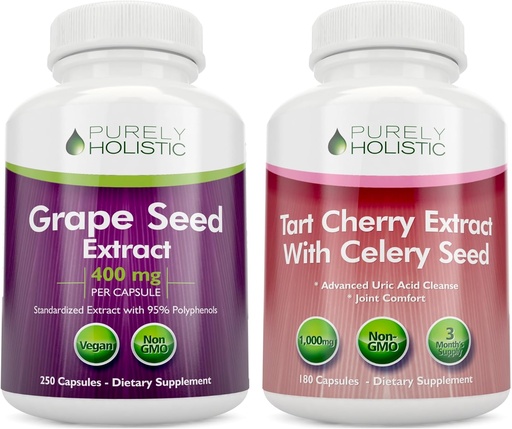 Purely Holistic Grape Seed Extract 400mg + Tart Cherry Extract and Celery Seed Bundle - 430 Vegan Capsules - Made in USA