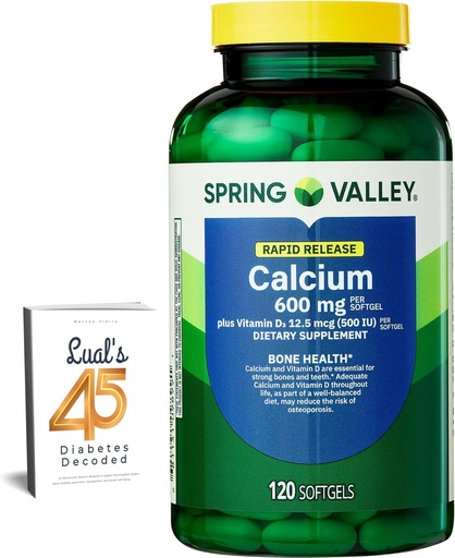 Spring Valley Calcium 600 mg + Vitamin D3, 120 Softgels, Bone Health, Strong Teeth & Osteoporosis Support, Rapid-Release Capsules, Gluten-Free Supplement Bundle with Luall's 45 Diabetes Decoded
