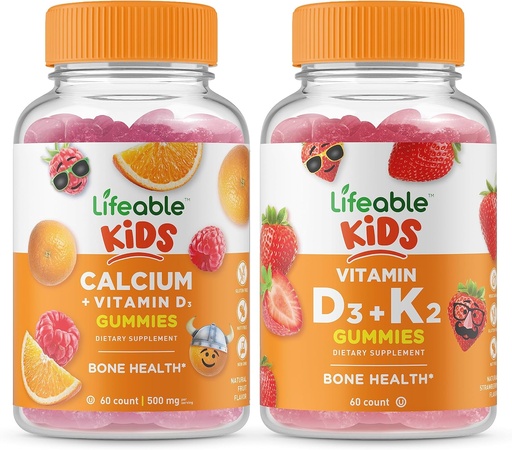 Lifeable Calcium with Vitamin D Kids + Vitamin D3 + Vitamin K2 Kids, Gummies Bundle - Great Tasting, Vitamin Supplement, Gluten Free, GMO Free, Chewable Gummy