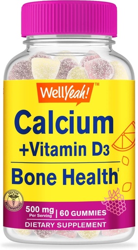 WellYeah Calcium 500mg + Vitamin D3 1000 IU (25 mcg) Gummies - Bone Health and Muscle Supprt, Immune Support Gummy, Non GMO, Gluten Free, Mix Fruit Flavors - 60 Gummies