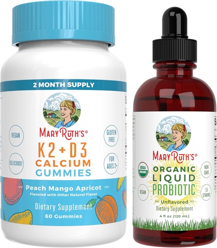 MaryRuth's Vitamin K2+D3 Gummies (Peach Mango & Apricot) & USDA Organic Probiotic Drops | Clean Label Project Verified® | Vitamins for Joint Support, & Overall Health | Vegan, Non-GMO, Gluten Free