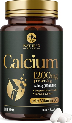 Calcium 1200 mg with Vitamin D3, Calcium Supplement Vitamins, Bone, Teeth & Immune Health Support, Calcium Supplements with D for Women & Men, Nature's Absorbable Calcium Carbonate - 120 Tablets