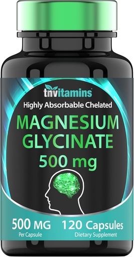 Magnesium Glycinate 500mg Per Capsule - 120 Count | 4 Month Supply! | Pure Chelated Magnesium Supplement for Sleep, Calm, Nerve, Joint, & Bone Support* | AKA Magnesium Bisgycinate | Non-GMO