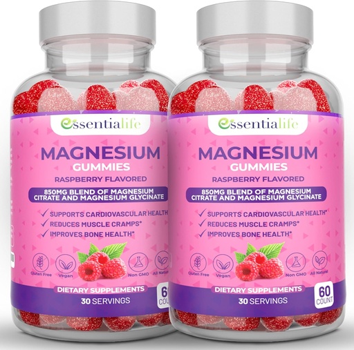 Magnesium Gummies 2 Packs Essentialife 100mg Per Serving - Blend of Magnesium Citrate & Magnesium Glycinate - Supports Healthy Digestion - Stay Calm & Energetic with Magnesium Supplements for Sleep