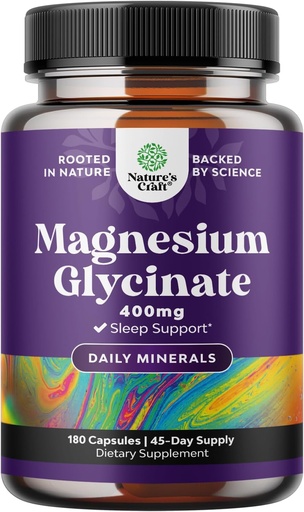 Pure Magnesium Glycinate Supplement 400mg Per Serving - Vegan High Absorption Chelated Magnesium Capsules for Women & Men with Elemental 400mg for Mood Sleep and Relaxation Support - 180 Count