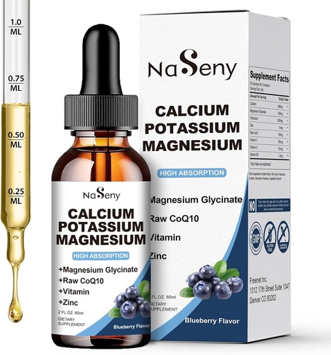 Calcium Potassium Magnesium Drops with Vitamin C,D,B6,400 mgMagnesium Drops for Overall Wellness-600mg Calcium, 1000mg Potassium(60ml)