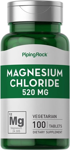 Piping Rock Magnesium Chloride | 520mg | 100 Tablets | Vegetarian, Non-GMO, Gluten Free Supplement