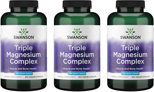 Swanson Triple Magnesium Complex - Mineral Supplement - Natural Support - Featuring Citrate, Oxide & Aspartate - (300 Capsules, 400mg Each, 3 Pack)