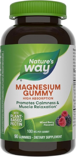 Nature’s Way Magnesium Gummies, Promotes Calm*, with Magnesium Citrate, Raspberry and Blackberry Flavored, 90 Gummies