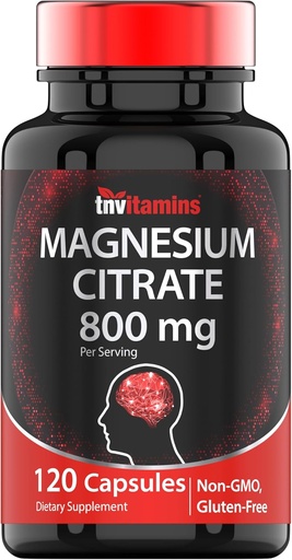 TNVitamins Magnesium Citrate 800 MG - 120 Capsules | Two Month Supply! | Pure Magnesium Citrate Powder Capsules | Citrato De Magnesio | Non-GMO | Produced in The USA!