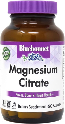 Bluebonnet Nutrition Magnesium Citrate (400mg of Magnesium)- Maximum Absorption - Supports Immune Health & Energy Production - Soyfree, Gluten-Free, Non-GMO, Kosher, Dairy Free, Vegan, 60 Caplets