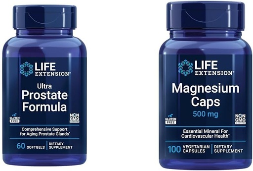 Life Extension Ultra Prostate Formula & Magnesium Caps, 500 mg, Magnesium Oxide, Citrate, Succinate, Heart Health, Healthy Bones, Metabolism Support, 100 Vegetarian Capsules