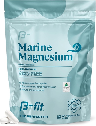 Marine Magnesium - 90 Capsules - 3-Month Supply - High Bioavailability Magnesium Supplement - No Additives & Gluten Free - Good Absorption - Simag Certified