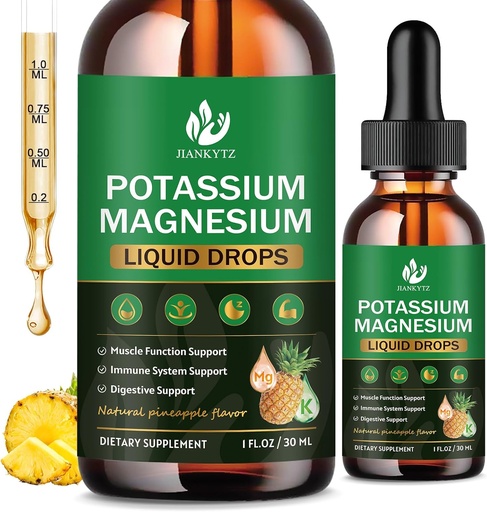 (2 Pack) Potassium Magnesium Supplement for Immune Health & Muscle Support, High Absorption, Triple Magnesium Complex with Glycinate, Taurate, Citrate and Potassium, Pineapple Flavour, 1 Fl Oz