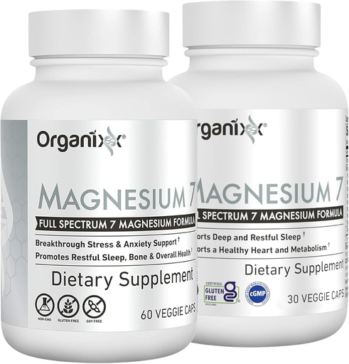 Organixx Magnesium Glycinate Supplement for Support Sleep, Muscle & Heart Health, 7 Type Magnesium Complex with Vitamin B6, Manganese Citrate, Gluten Free, Vegan, Non GMO, High Absorption, 90 Capsules