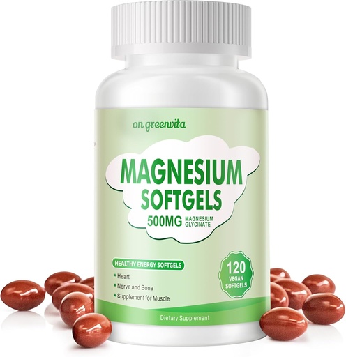 Magnesium Supplement Softgels, Easy Absorption Magnesium Glycinate 500mg, High Bioavailability Magnesium for Sleep & Calm Support, Nervous, Muscle & Bone Health 120 Softgels
