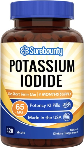 Potassium Iodide 65MG, 4 Months Supply, 120 Tablets, YODO Naciente, Ki Tablets, Made in USA, Thyroid Support, KI Potassium Iodide Dietary Supplement