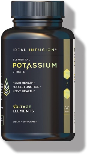 Voltage Elements Potassium Citrate 1430mg - Heart & Kidney Health, Electrolyte Balance, Nerve Function - Elemental Potassium 500mg (240 Capsules) Vegan