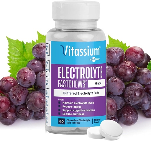 Vitassium FastChews, Chewable Electrolyte Tablets for Management of POTS and High Sodium Diets, Fast-Acting Sodium Tablets, Grape Flavor, 60 Count