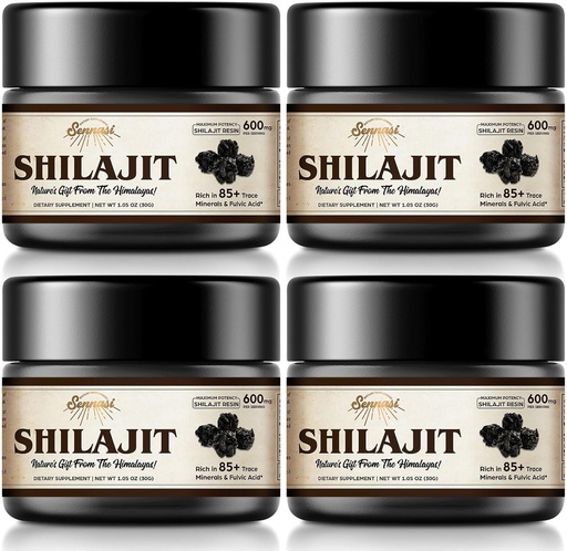 Shilajit Pure Himalayan Organic Shilajit Resin - 600mg Maximum Potency Natural Organic Shilajit Resin with 85+ Trace Minerals & Fulvic Acid for Energy, Immune Support, 30 Grams (4 Pack)