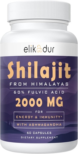 2000 MG Shilajit Supplement,Shilajit Resin Organic,Shilajit Capsules,100% Pure Shilajit with 85+ Trace Minerals & 60% Fulvic Acid,Boost Energy & Immunity,Vegetarian,Natural,60 Capsules