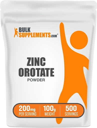 BulkSupplements.com Zinc Orotate Powder - Zinc Minerals Supplement, for Immune Support - Gluten Free, 200mg per Serving, 100g (3.5 oz) (Pack of 1)