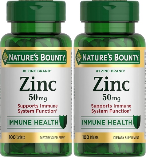Nature's Bounty Zinc, Supports Immune System Function, Dietary Supplement, 50 mg, Caplets, 100 Ct (Pack of 2)