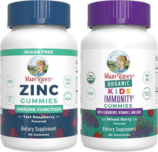 MaryRuth Organics Zinc (Tart Raspberry) & Kids Immunity Gummies (Mixed Berry) | Clean Label Project Verified® | Vitamins for Immunity & Overall Health and Wellness | Vegan, Non-GMO, No Gelatin