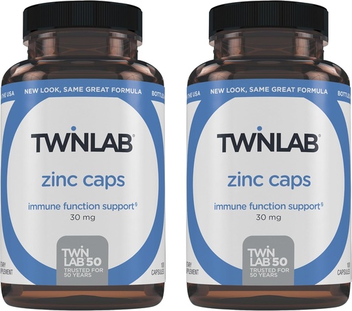 Twinlab Zinc Caps - Immune Support Supplement - Zinc Picolinate & Gluconate - Supplement for Immune Defense, Healthy Skin, DNA Synthesis, Metabolism and Growth - 30mg, 100 Caps - 2 Pack