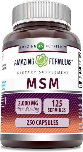 Amazing Formulas MSM (Methylsulfonylmethane) Supplement | 2000 Mg Per Serving | Capsules | Non-GMO | Gluten Free | Made in USA (250 Count | 1 Pack)