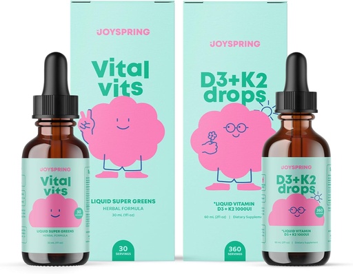 JoySpring Vitamin D Drops for Toddlers to Support Growth and Daily Multivitamin with Burdock Root & Elderberry for Kids Immune Booster